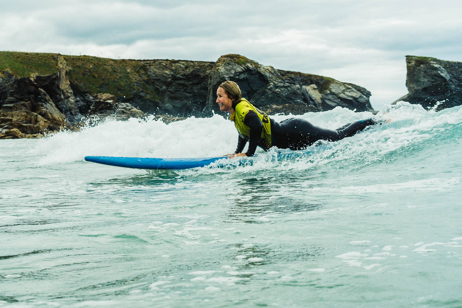 The perfect start to surfing. The initial lesson will give you a clear introduction into the sport of surfing, covering the essential aspects of safety, board handling, wave catching, taking off and wave riding. Armed with this skill-set you are well equipped to ride your first waves.