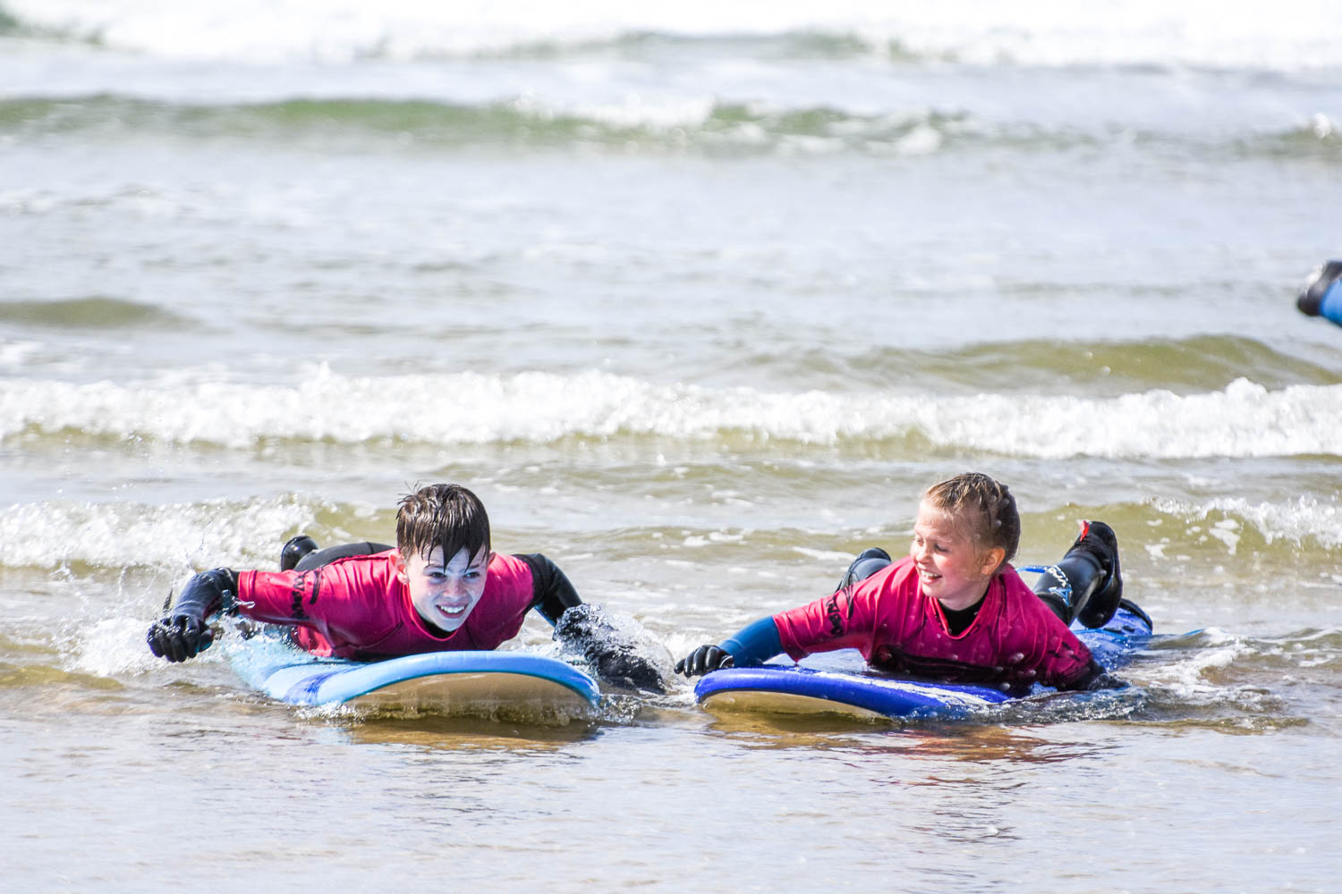 Our family surf package is a discounted group lesson for 2 parents and 2 children or 4 family members. The lesson lasts for 1.75 hours.